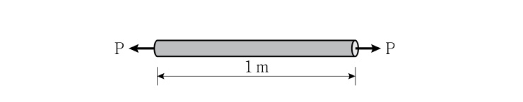 그림과 같이 길이가 1m, 지름이 50mm인 강봉에 인장력 P가 단면의 도심에 작용하여 강봉의 길이는 1,005mm, 지름은 49.9mm가 되었다. 강봉의 푸아송비는?