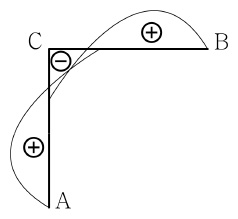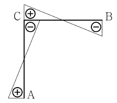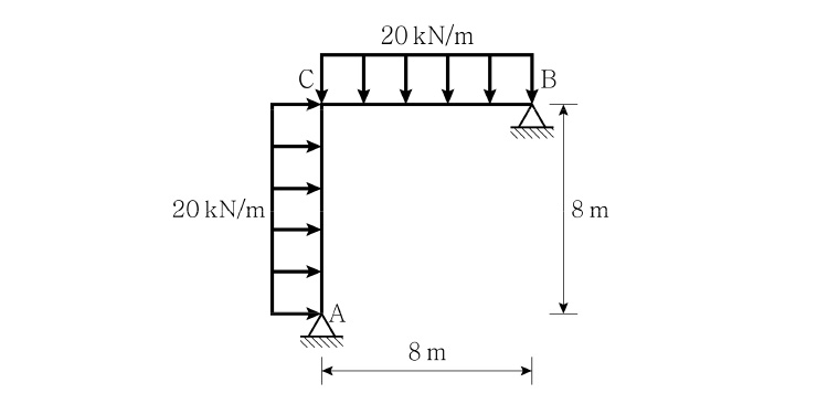 그림과 같은 부정정 구조물에서 정성적인 축력도로 옳은 것은? (단, 휨강성 EI와 축강성 EA는 일정하고, 자중은 무시한다)