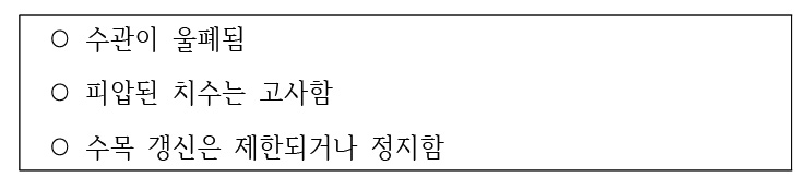줄기의 피해는 주로 형성층 조직이 상처를 입음으로써 발생한다.