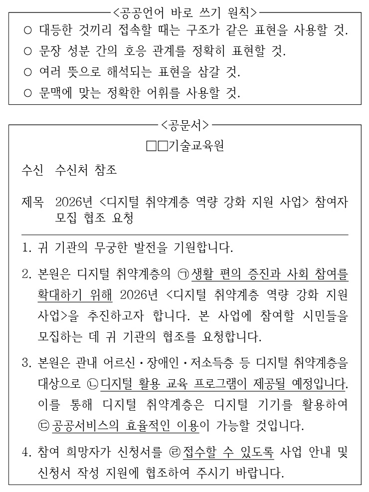 <공공언어 바로 쓰기 원칙>에 따라 <공문서>의 ㉠~㉣을 수정한 것으로 적절하지 않은 것은?
