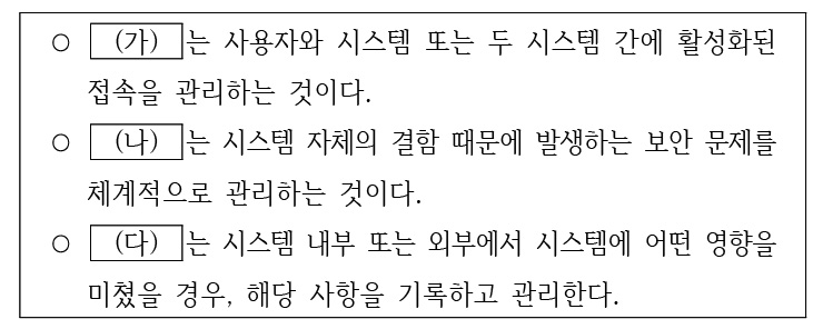 (가) 로그 관리 (나) 취약점 관리 (다) 계정관리