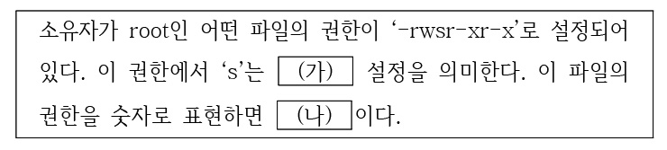다음은 리눅스의 파일 권한에 대한 설명이다. (가), (나)에 들어갈 내용을 바르게 연결한 것은?