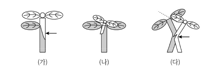 그림은 박과 채소류의 접목 방법이다. (가)~(다)에 해당하는 접목 방법을 바르게 연결한 것은? (단, 직선화살표는 접목클립을 씌우는 위치이다)