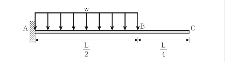 그림과 같이 등분포하중이 작용하는 캔틸레버보에서 C점의 처짐은? (단, 보의 휨강성 EI는 일정하고, 자중은 무시한다)