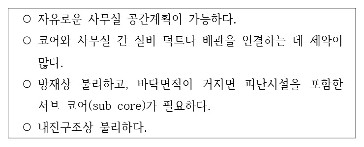 다음 설명에 해당하는 업무시설의 코어(core) 형식은?