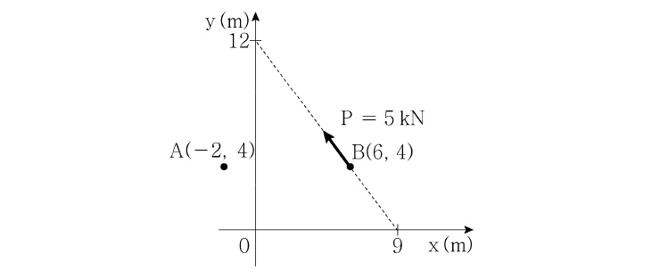 그림과 같이 힘 P가 작용할 때, 힘 P의 A점에 대한 모멘트의 크기[kNㆍm]는?