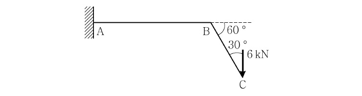 그림과 같은 캔틸레버 구조물에서 부재 BC에 발생하는 축력의 크기[kN]는? (단, 자중은 무시한다)
