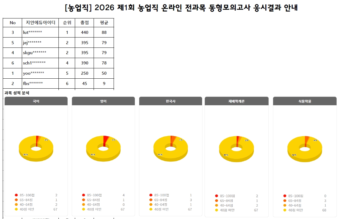 ⭐2026 제1회 농업직 온라인 전과목 동형모의고사 응시결과 발표⭐